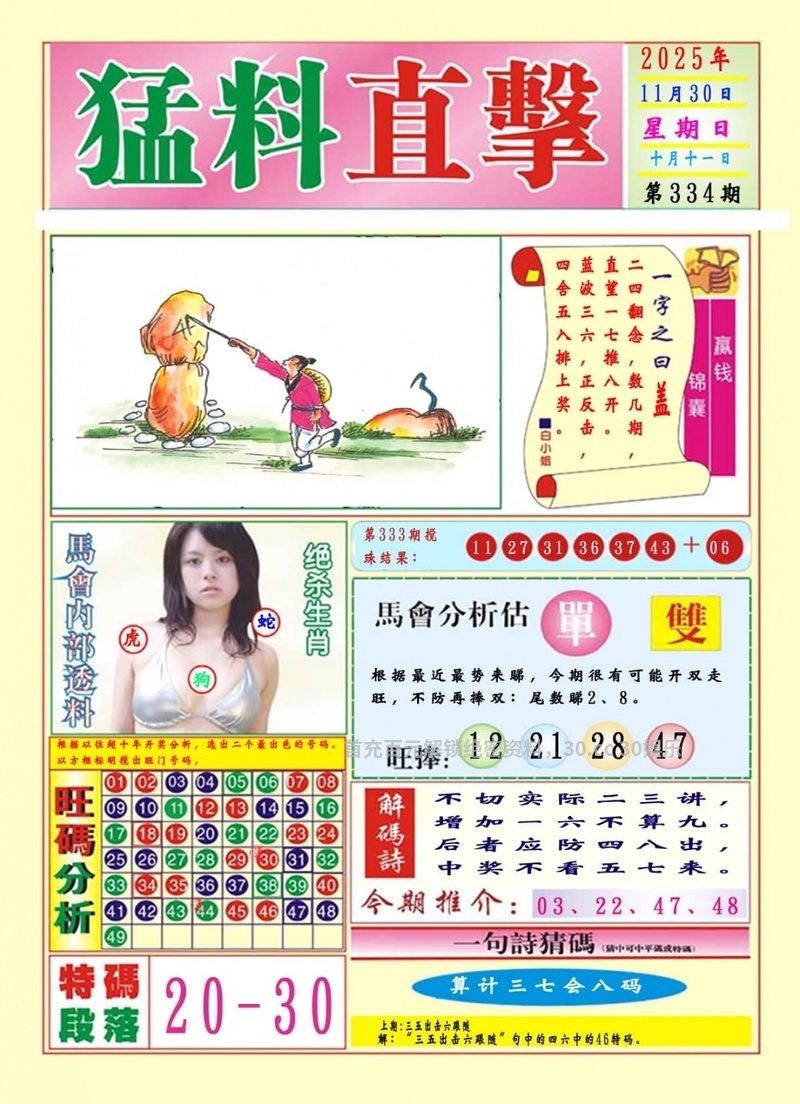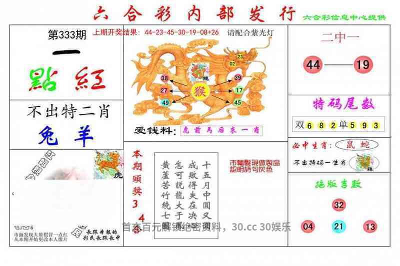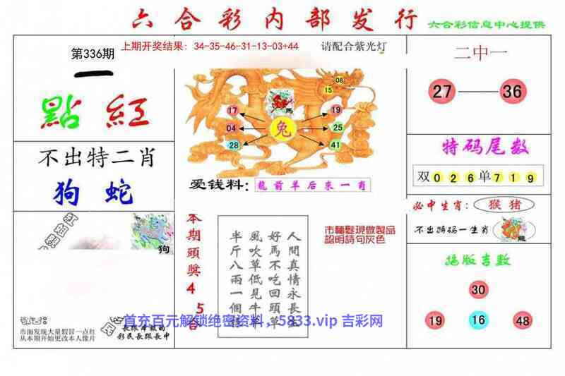 | 335期:天地+二肖〖地肖+猪猴〗开:狗44准 |