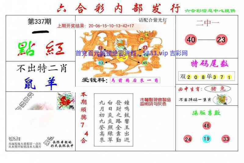 | 333期:天地+二肖〖地肖+猪龙〗开:鼠06准 |
